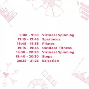 Het groepslessenrooster voor de maandagen